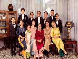 Gia đình bên nội của Hà Kiều Anh diện áo dài truyền thống. Trông ai nấy đều toát ra phong thái sang trọng, quyền quý