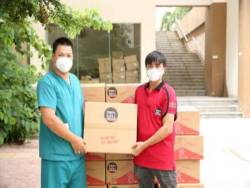 Tình nguyện viên của PhinDeli trao quà cho y bác sĩ tại Bệnh viện dã chiến số 6, TP Thủ Đức