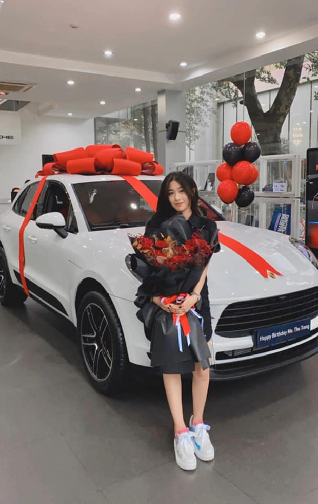 Chính vì “cá kiếm” được nhiều như vậy nên cặp đôi thường xuyên mua xe để kỉ niệm những mốc quan trọng. Vào ngày 25/6 vừa qua, nhân dịp sinh nhật lần thứ 26, Trang Lou được chồng tặng một chiếc xe Porsche Macan có giá khoảng 4 tỷ đồng.