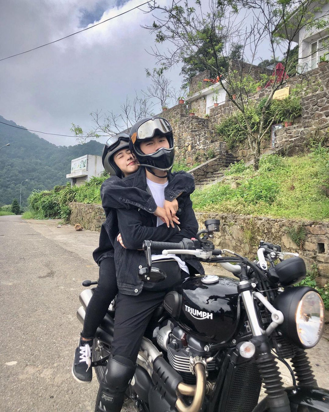 Riêng Tùng Sơn có niềm đam mê mãnh liệt với xe motor phân khối lớn. Không ít lần, cặp đôi đã có những chuyến đi “phượt” trên chiếc Triumph có giá khoảng nửa tỷ đồng.