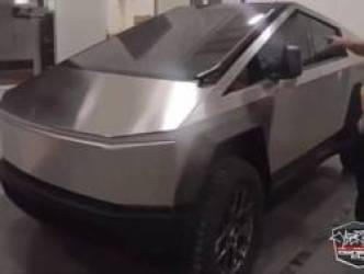 Trước đây khi ra mắt vào năm 2019, Tesla Cybertruck không có gương chiếu hậu 2 bên và cần gạt nước phía trước, đồng thời xe trang bị bộ mâm đặc ruột và lốp gai cỡ lớn.