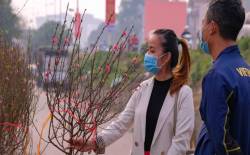 Cô Nguyễn Thị Tuất (áo hồng, Láng Thượng, quận Đống Đa) năm nào cũng đi mua đào về chơi Tết sớm. “Gia đình tôi thường mua đào chơi mấy đợt như Tết dương lịch, Tết âm lịch, rồi ra Giêng cũng mua về chơi. Năm nay đào sớm nên chưa đẹp và giá vẫn đắt hơn”, cô Tuất chia sẻ.