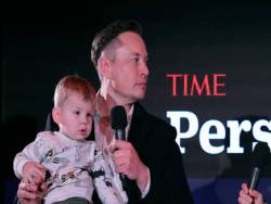 Musk cùng con trai tại một buổi họp báo của tạp chí Time.