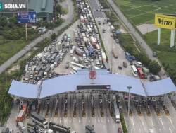 Các đoàn xe nối đuôi nhau để quay ngược trở lại tại trạm thu phí Pháp Vân – Cầu Giẽ sáng nay.