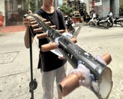 Bộ ăngten tự chế để bắt sóng wifi trên phạm vi rộng của nhóm nghiên cứu. (Ảnh: Trung Hiếu).
