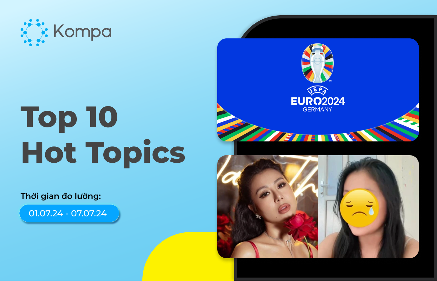 BXH Hot Topics tuần nằm trong chuỗi các BXH cập nhật xu hướng mạng xã hội dành cho các Marketer gồm Top 10 Hot Topics tuần, Top 10 chiến dịch truyền thông nổi bật của tháng và Top 10 Influencers được đề cập nhiều nhất tháng. BXH được đo lường trên nền tảng dữ liệu lớn thông qua ứng dụng công nghệ dữ liệu (AI, machine learning) từ Kompa có độ chính xác và uy tín cao, giúp Marketer cập nhật nhanh chóng xu hướng nổi bật mạng xã hội, làm cơ sở phát triển ý tưởng lên kế hoạch truyền thông và thực hiện các viral content trên khắp các kênh mạng xã hội.