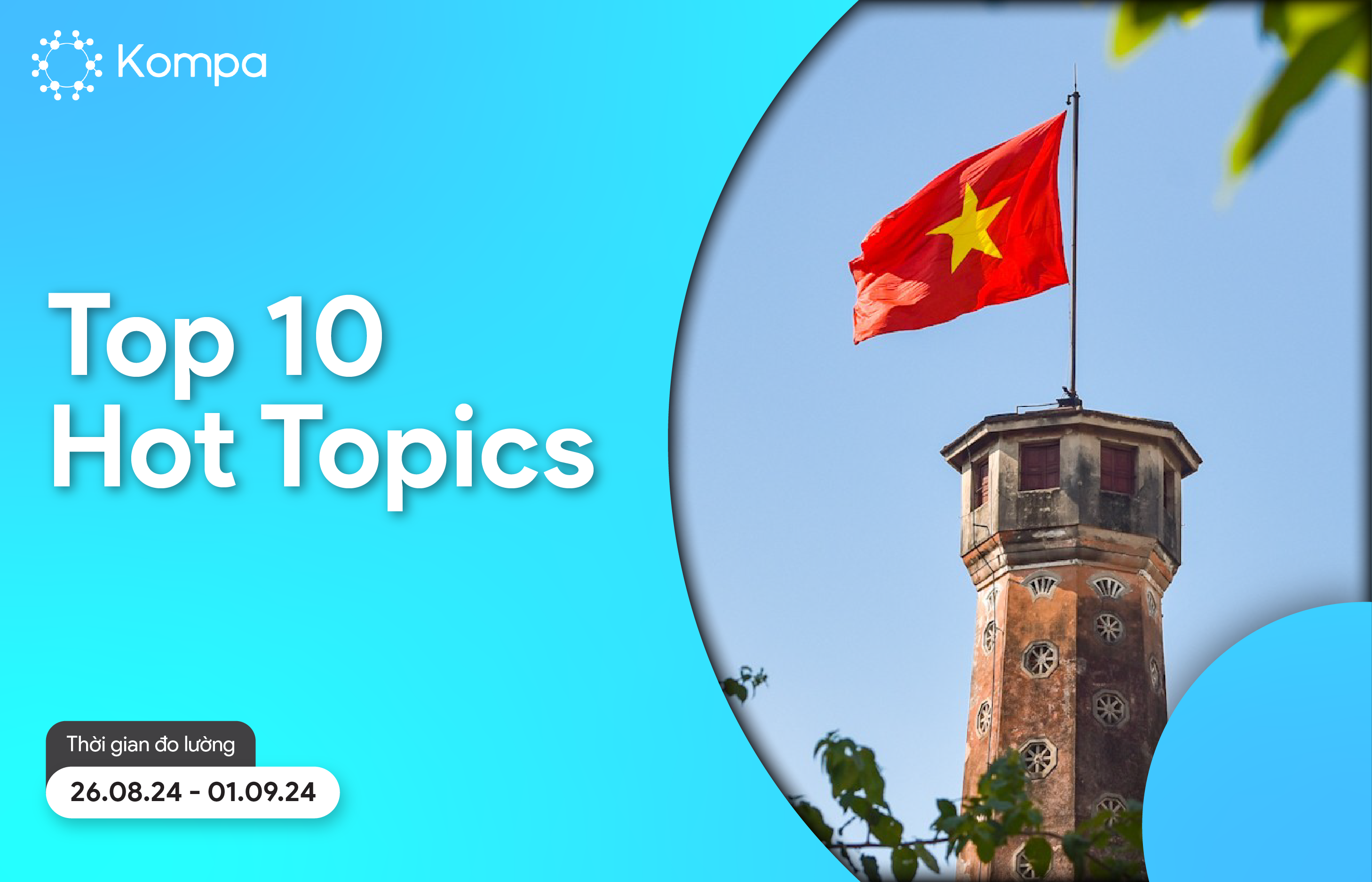 Tuần vừa qua, không khí trên mạng xã hội tại Việt Nam thực sự sôi động với những chủ đề nổi bật từ niềm tự hào dân tộc ngập tràn khắp các trang cá nhân khi chào đón lễ Quốc Khánh 2/9, đến những lùm xùm gây xôn xao dư luận của các nhân vật nổi tiếng, và cả những sự kiện thời tiết ảnh hưởng đến hàng triệu người. Cùng điểm qua Top 10 Hot Topics trên mạng xã hội từ ngày 26/8 đến 1/9.