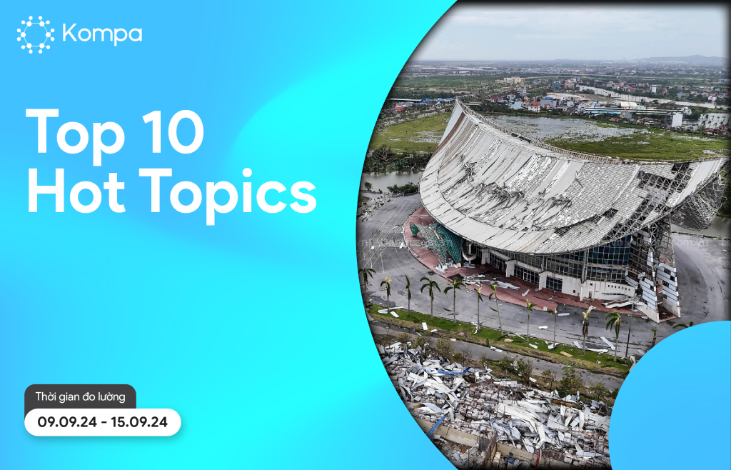 Tuần 9.9 đến 15.9 vừa qua, MXH tập trung quan tâm chú ý đến các chủ đề thời sự nóng như tin bão Yagi, lũ lụt và sạt lỡ tại các tỉnh miền Bắc. Đây cũng là tuần ghi nhận lượng lớn cảm xúc hoang mang, lo lắng và đau buồn của cộng đồng khi chứng kiến cảnh bão lũ hoành hành.
