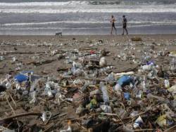 Nhựa dạt vào bờ biển Berawa, Bali, Indonesia.