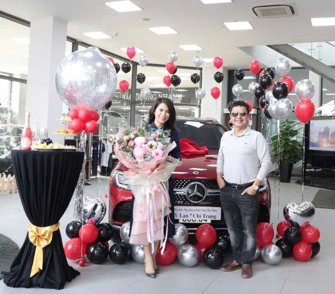 Chiếc xe Mercedes-Benz GLC 300 4Matic có mức giá niêm yết là 2,499 tỷ đồng. Trên biển tên gắn trên xế hộp có in đồng thời tên Ý Lan và Chí Trung. Cả hai đều thể hiện rõ nét mặt tươi tắn, hạnh phúc khi nhận xe.