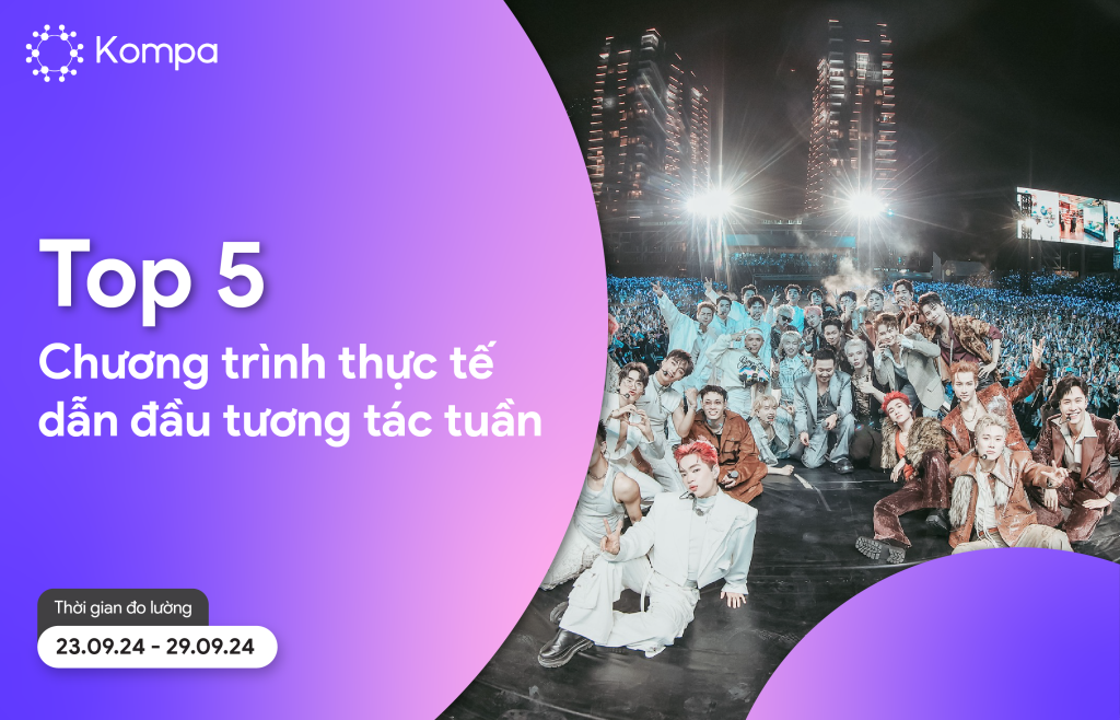 Top chương trình thực tế nhiều tương tác nhất trên mạng xã hội được thực hiện bởi hệ thống Social Listening hiện đại của Kompa, BXH mang đến cái nhìn khách quan và chi tiết về mức độ yêu thích của công chúng, sức hút của các chương trình, và là nền tảng thông tin tham khảo cho các nhà sản xuất, các KOL/KOC người nổi tiếng tham dự, các Thương hiệu và nhà tài trợ thực hiện chương trình.