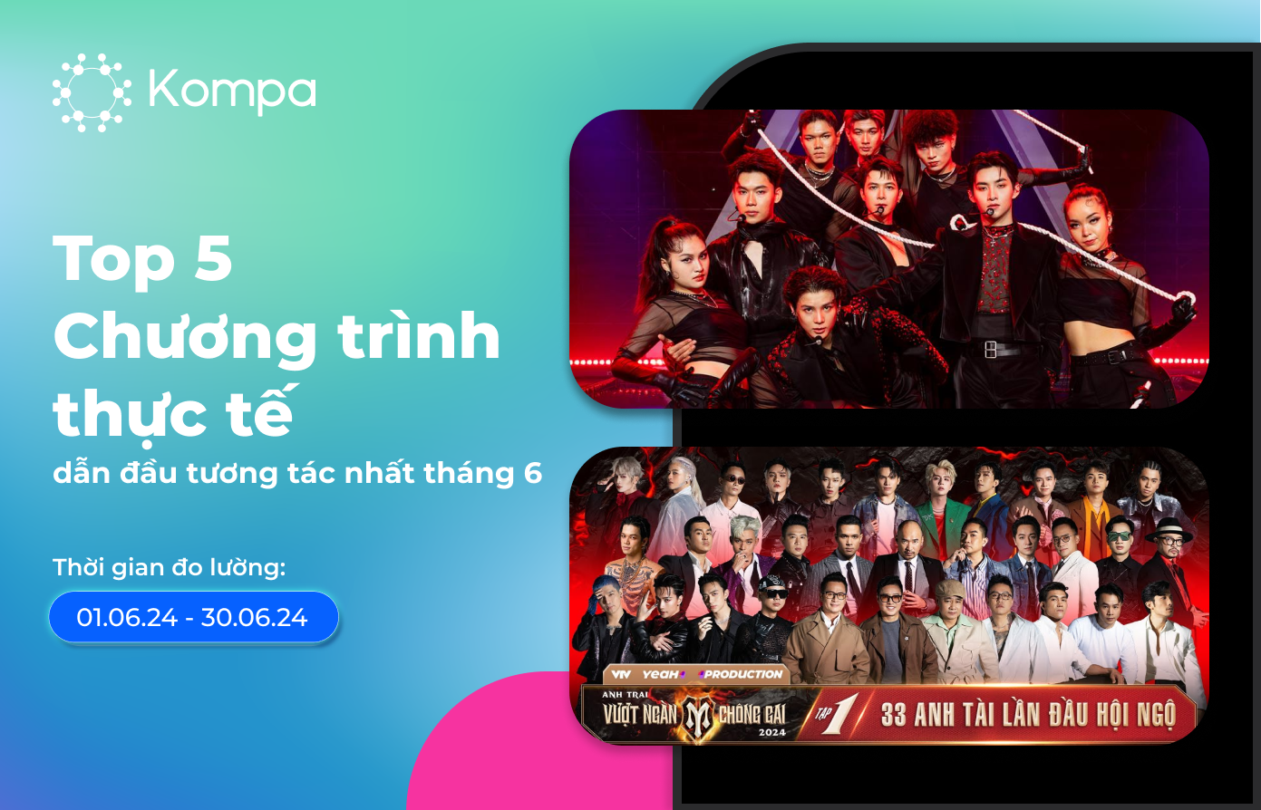 Top chương trình thực tế nhiều tương tác nhất trên mạng xã hội được thực hiện bởi hệ thống Social Listening hiện đại của Kompa, BXH mang đến cái nhìn khách quan và chi tiết về mức độ yêu thích của công chúng, sức hút của các chương trình, và là nền tảng thông tin tham khảo cho các nhà sản xuất, các KOL/KOC người nổi tiếng tham dự, các Thương hiệu và nhà tài trợ thực hiện chương trình.
